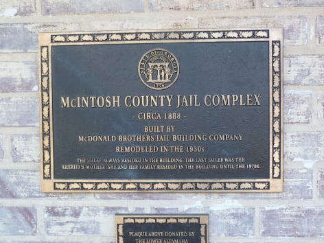 Built in 1888, the Old Jail is one of the three oldest public buildings in Darien. Along with housing McIntosh County’s inmates, the sheriff and his family lived here. In the 1930’s, the front tower (pictured above) was removed and a front porch added. The last jailer was the mother of Sheriff Tom Poppell, who was in residence with her family until the 1970’s. In 2002, a new jail was built, and the old jail was abandoned.